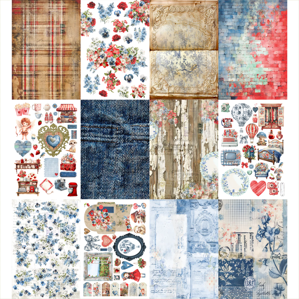 Os blocos de papéis de coleção fazem o maior sucesso! Além de serem muito usados para estruturas e decoração, os desenhos são menores do que nos papéis 30x30cm, o que facilita o uso na decoração de mini álbuns.